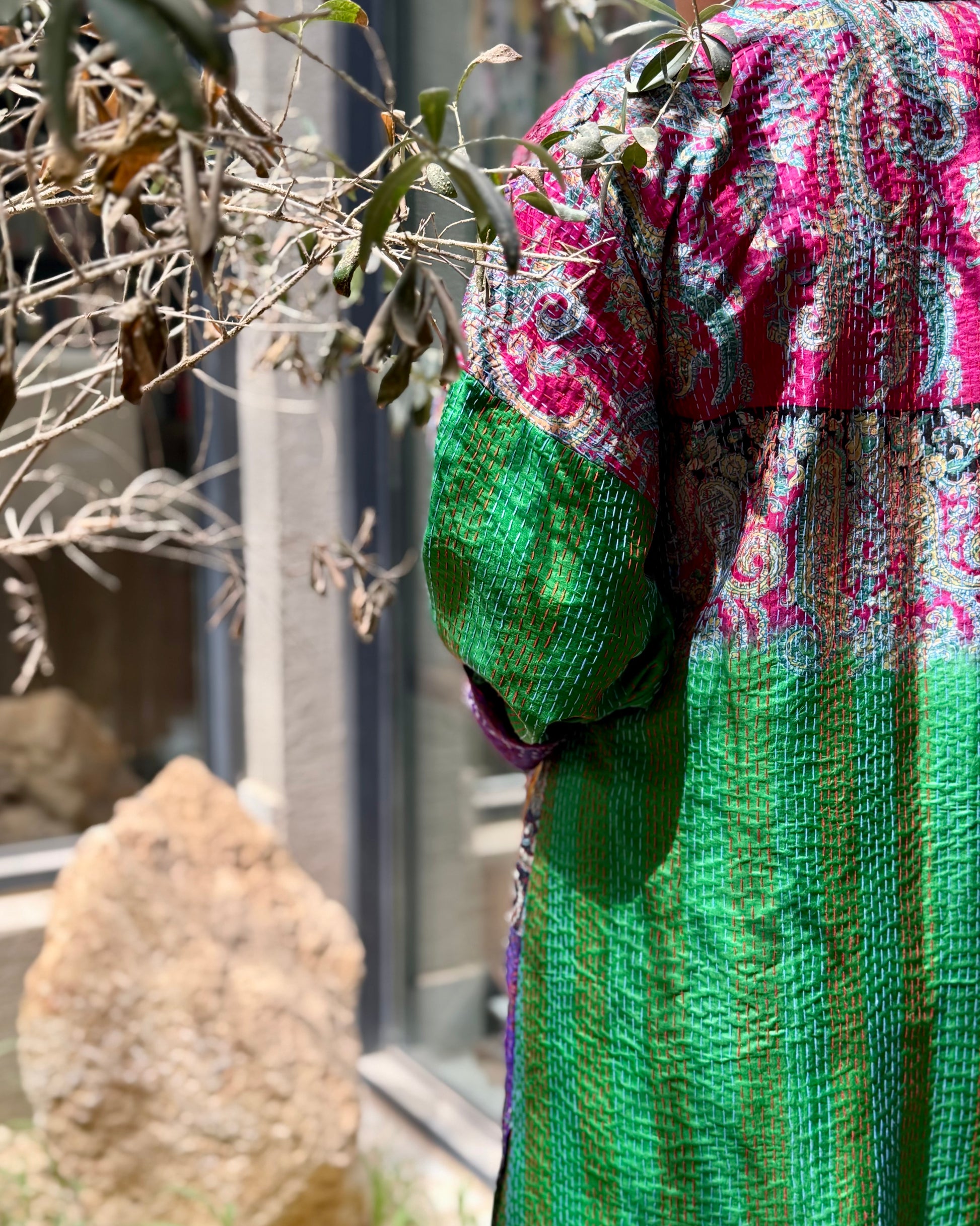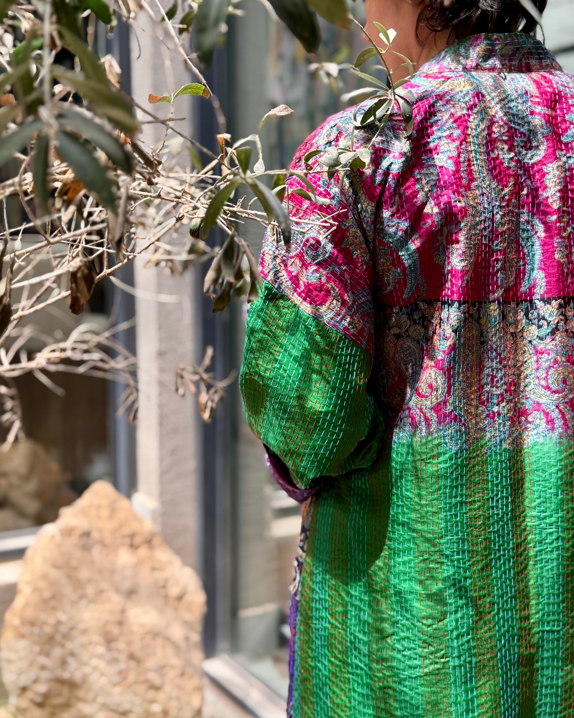 Lush leaves and turquoise waters, a garden where fountains murmur like the River Kawthar under glistening Alhambra tiles. Peacock Courtyard is a tribute to the majlis of poetesses and courtesans who once recited under latticed arches, their words rising with the scent of orange blossoms, sunlight pouring through calligraphed stone and colored glass. These abayas gather the lush abundance of Firdaus, imagined on earth.