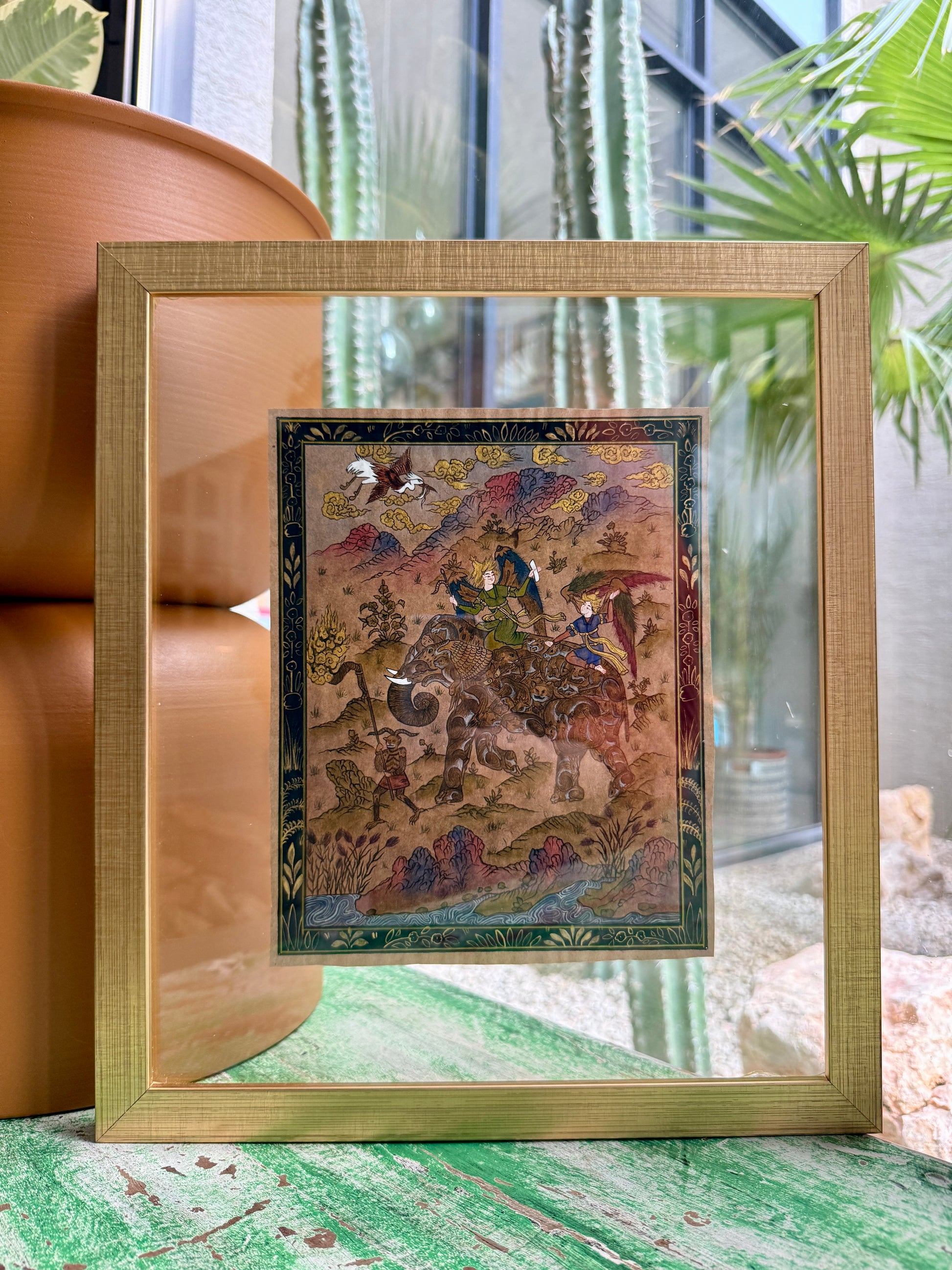 Original miniature portrait (Origin: Bukhara), framed in double-glass frames (front and back viewable) to preserve both pigment and light. Dimensions: 40 cm x 34 cm